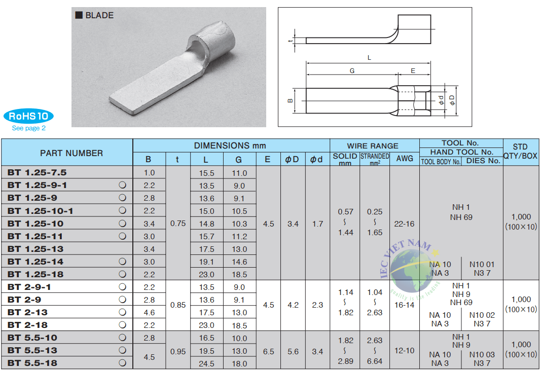 Xuất xứ: Nhật Bản Nhà sản xuất: NICHIFU Mã số sản phẩm: Đầu cốt dẹt Nichifu (loại BT) Quý khách vui lòng liên hệ với chúng tôi để được tư vấn chi tiết về sản phẩm. Hotline: 0335 415 686 Tải xuống catalog thiết bị điện Nichifu -