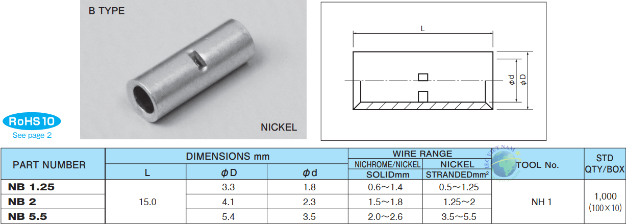 Đầu cốt nối thẳng chịu nhiệt độ cao NICHIFU (Loại N)