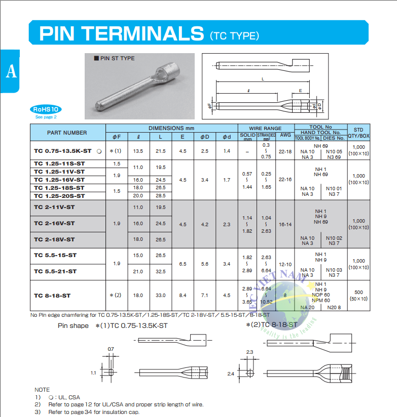 Đầu cốt pin đặc NICHIFU (loại TC)