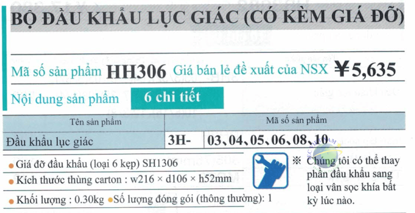 Thông số kỹ thuật bộ đầu khẩu lục giác HH306