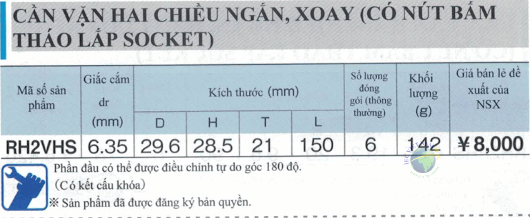 Phần tay cầm bằng nhôm nhẹ, thiết kế ngắn tiện lợi để thao tác. Trang bị cơ cấu tháo lắp SOCKET giúp đầu khẩu khó bị rơi ra trong khi thao tác. Có thể thay đổi đầu khẩu bằng thao tác ấn nút.