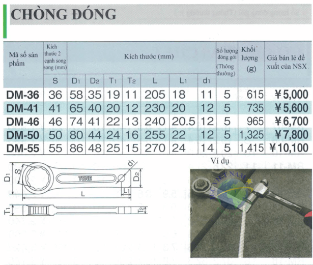 Thông số kỹ thuật chòng đóng DM