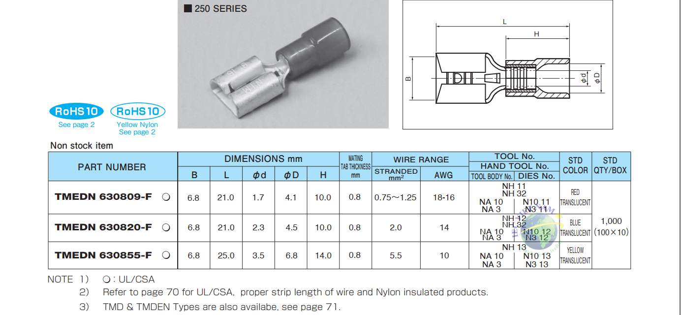 Mã số sản phẩm: Đầu cốt nối nhanh đực cái Nichifu (loại TMEDN 250 F)
