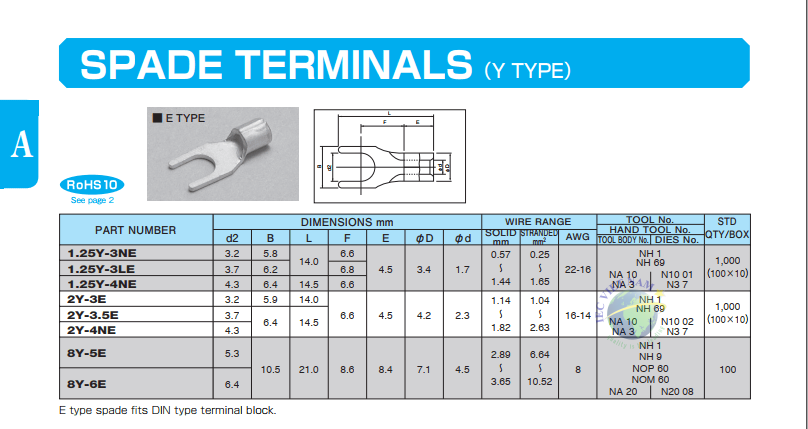 - Đầu cốt trần chữ Y: hay còn gọi cốt chỉa, chĩa, chẻ, càng cua – Spade Terminals (Y-Type).
