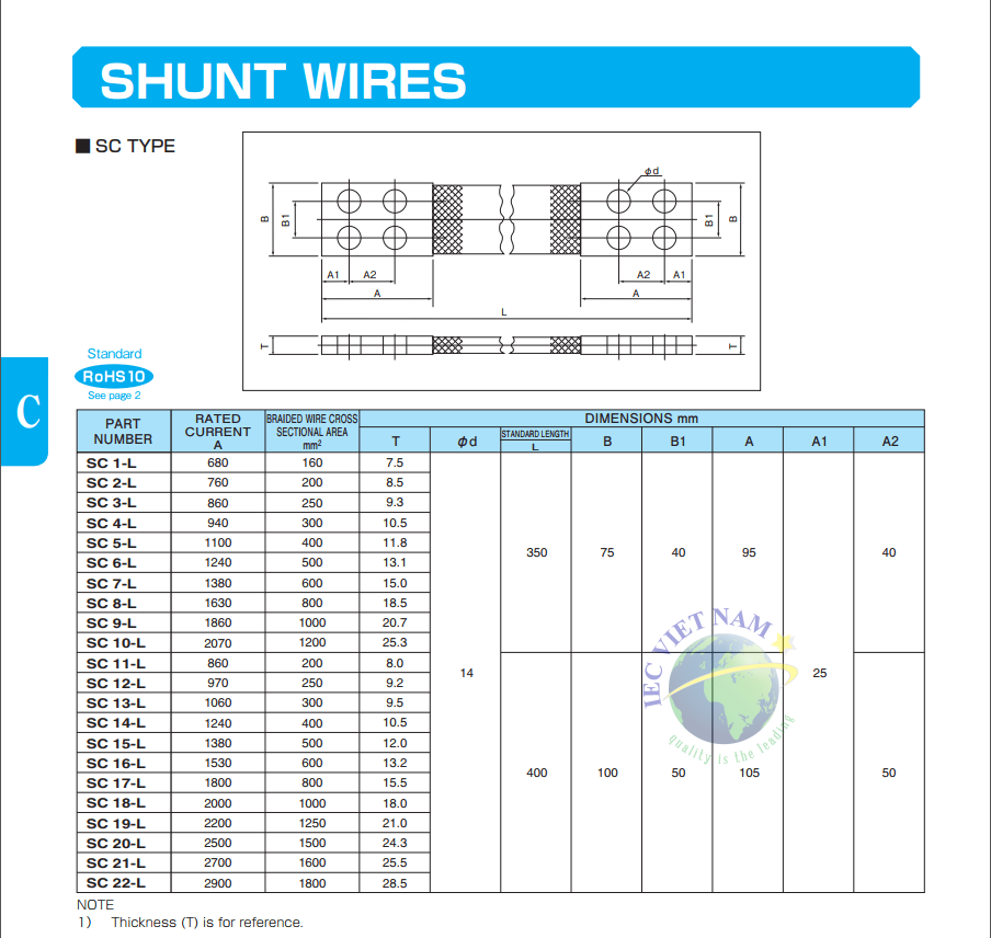 Thông số kỹ thuật dây đồng bện tiếp địa NICHIFU