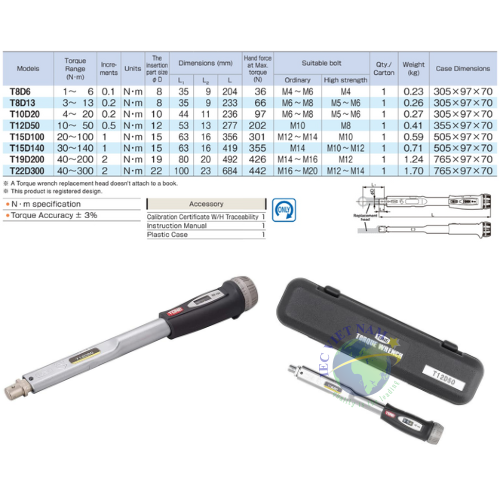 Kiểm tra tay cân lực T12D50 xem có đầy đủ phụ kiện đi kèm không, bao gồm đầu đo thay thế và hướng dẫn sử dụng.