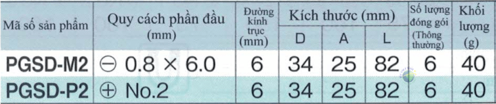 Thông số kỹ thuật Tô vít tay cầm ngắn TONE PGSD